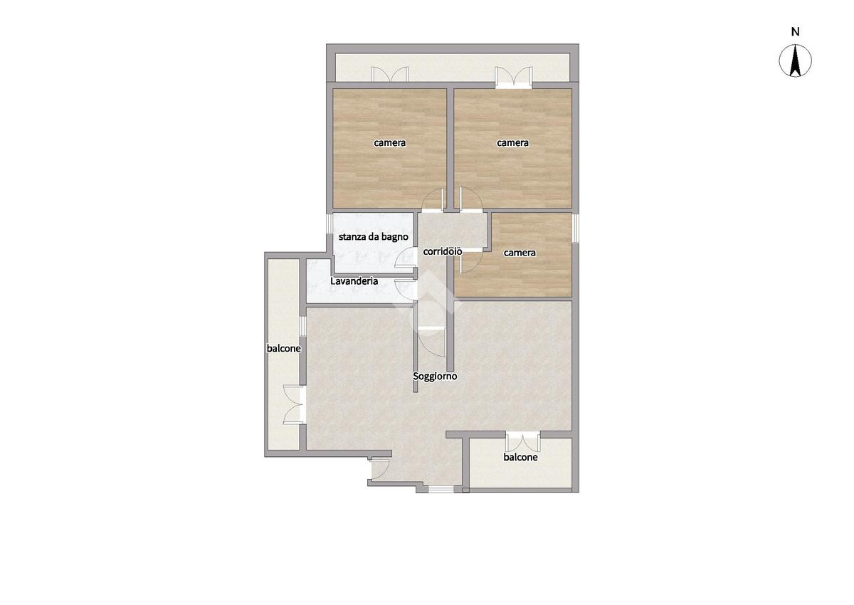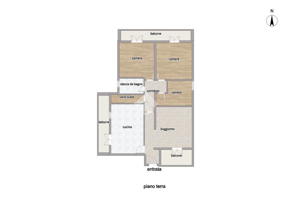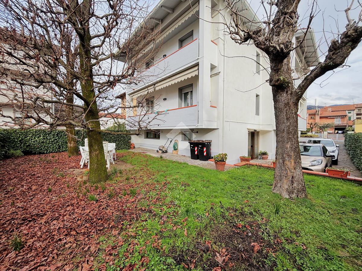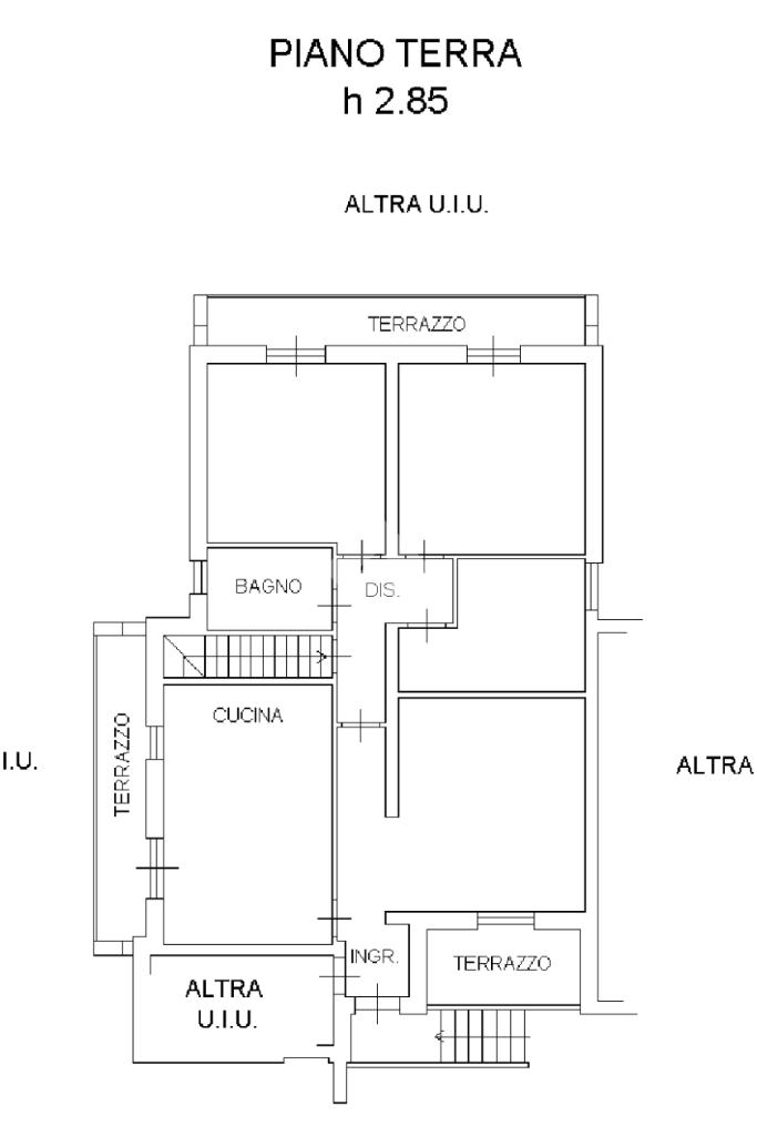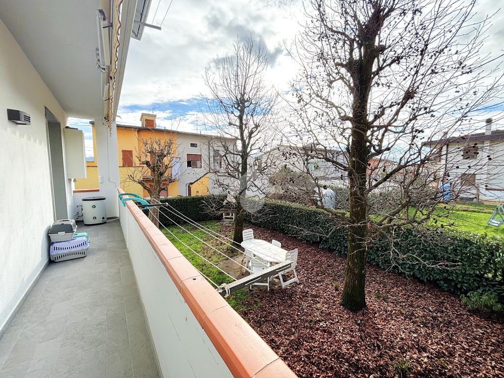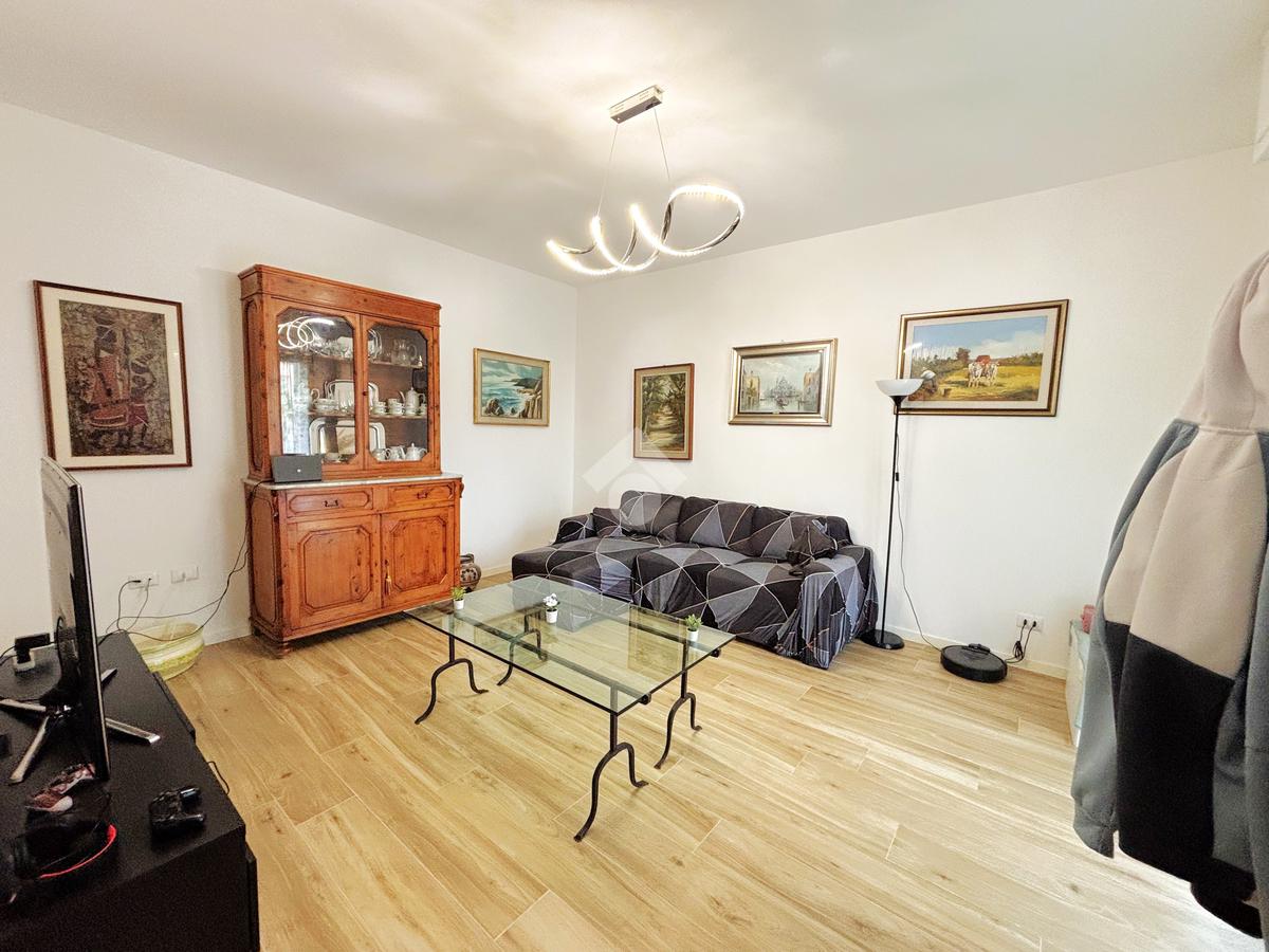 Al piano terra si sviluppa un appartamento composto da soggiorno e cucina separati, entrambi con accesso diretto al rispettivo balcone. La zona notte comprende tre camere da letto, di cui una matrimoniale e una camera di dimensioni medie, entrambe con accesso al balcone, oltre a una camerina. Completa il piano un bagno finestrato. La proprietà è inoltre arricchita da un garage e da un giardino frontale esclusivo.