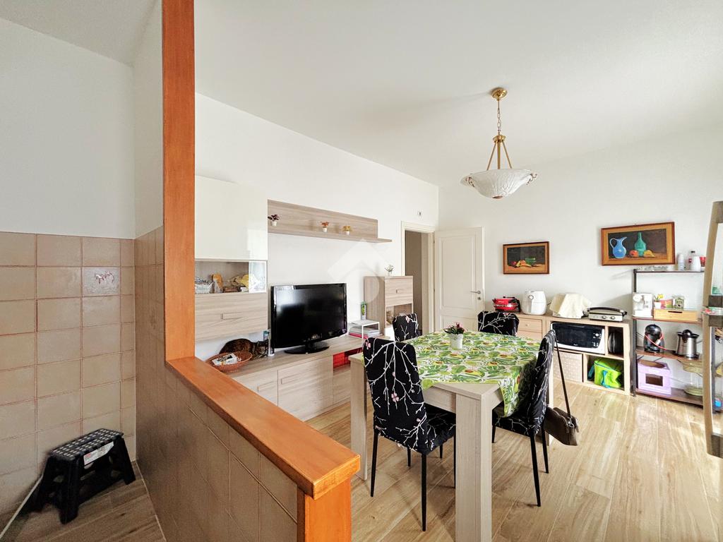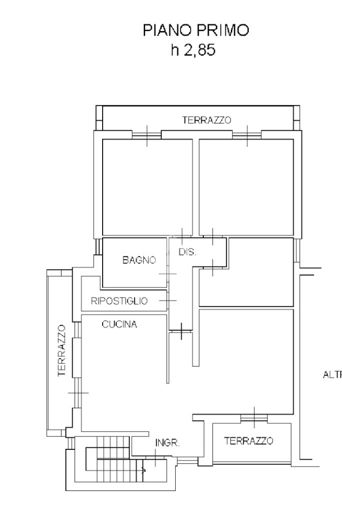Al primo piano troviamo il secondo appartamento, anch’esso con soggiorno e cucina separati, entrambi dotati di accesso al proprio balcone. La zona notte è composta da due camere matrimoniali, entrambe con accesso al balcone, una camerina, un bagno finestrato e un comodo ripostiglio adibito a zona lavanderia.